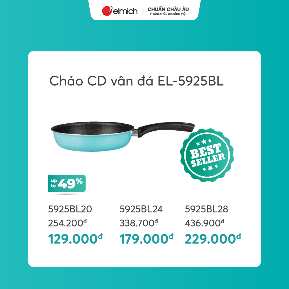 - Bộ nồi chảo chống dính vân đá EL-5925BL size 20cm chỉ 129k, giá gốc 254k