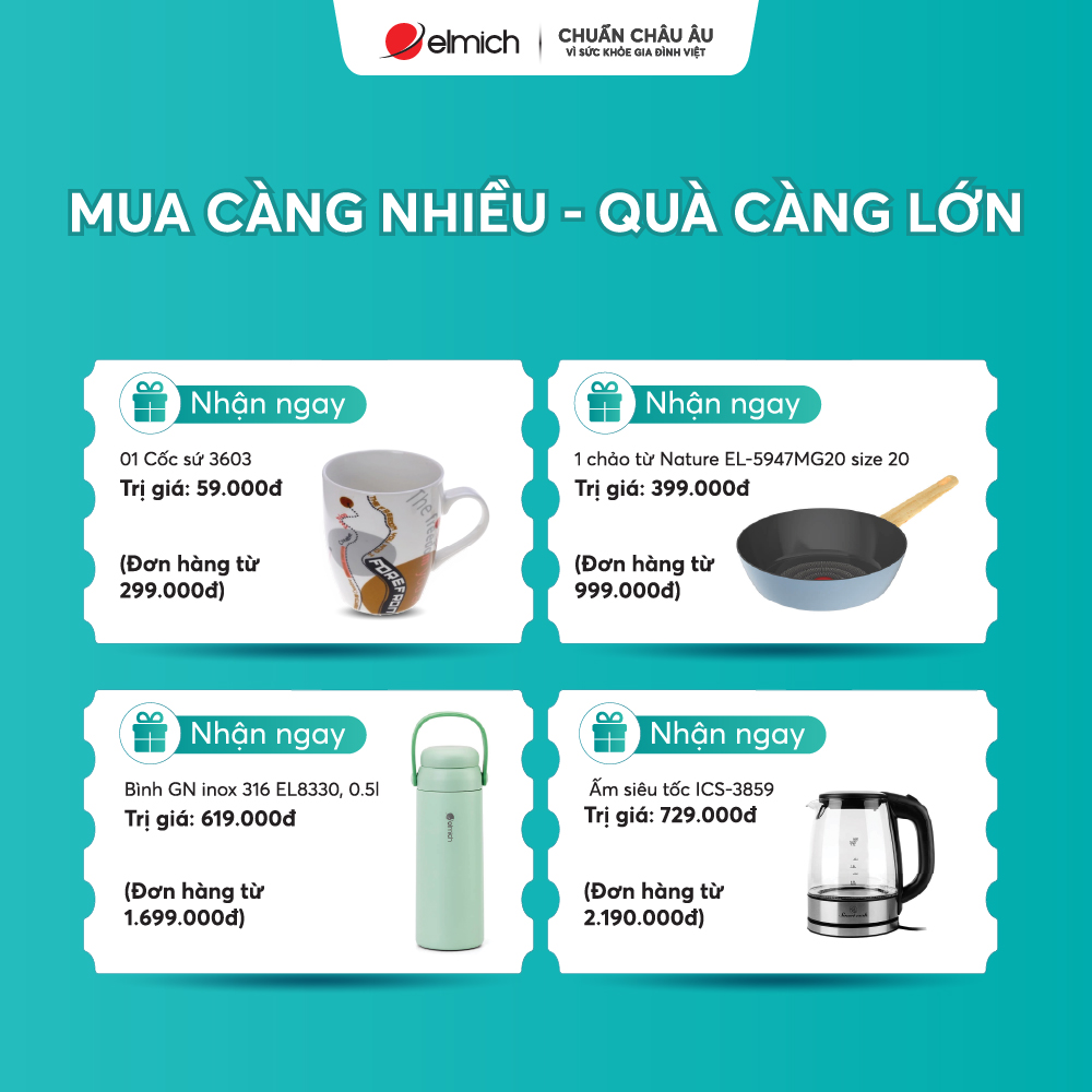 - Đơn hàng trị giá 1699K Tặng bình giữ nhiệt inox 316 Elmich EL8330 dung tích 500ml trị giá 619K