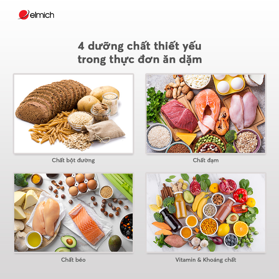 Một chế độ ăn dặm đầy đủ dưỡng chất sẽ giúp bé phát triển cả về thể chất lẫn trí não. Dưới đây là các dưỡng chất không thể thiếu: