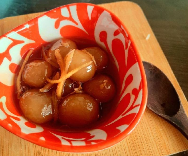 Cho phần gừng đã thái thành từng sợi vào trong nồi. Cho thêm bánh ngào đã luộc chín, đun thêm khoảng 3 phút cho gừng, đường thốt nốt thấm vào bên trong bánh là có thể ăn được ngay.