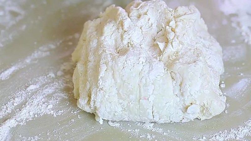 Bạn lấy bột trải ra một bề mặt phẳng và sạch. Dùng tay nhồi bột kỹ lưỡng thành một khối dẻo mịn, đến khi bột không còn dính tay là được. Bạn bọc kín khối bột đó bằng nilon bọc thực phẩm và để bột nghỉ trong khoảng 20 phút trước khi làm bánh.