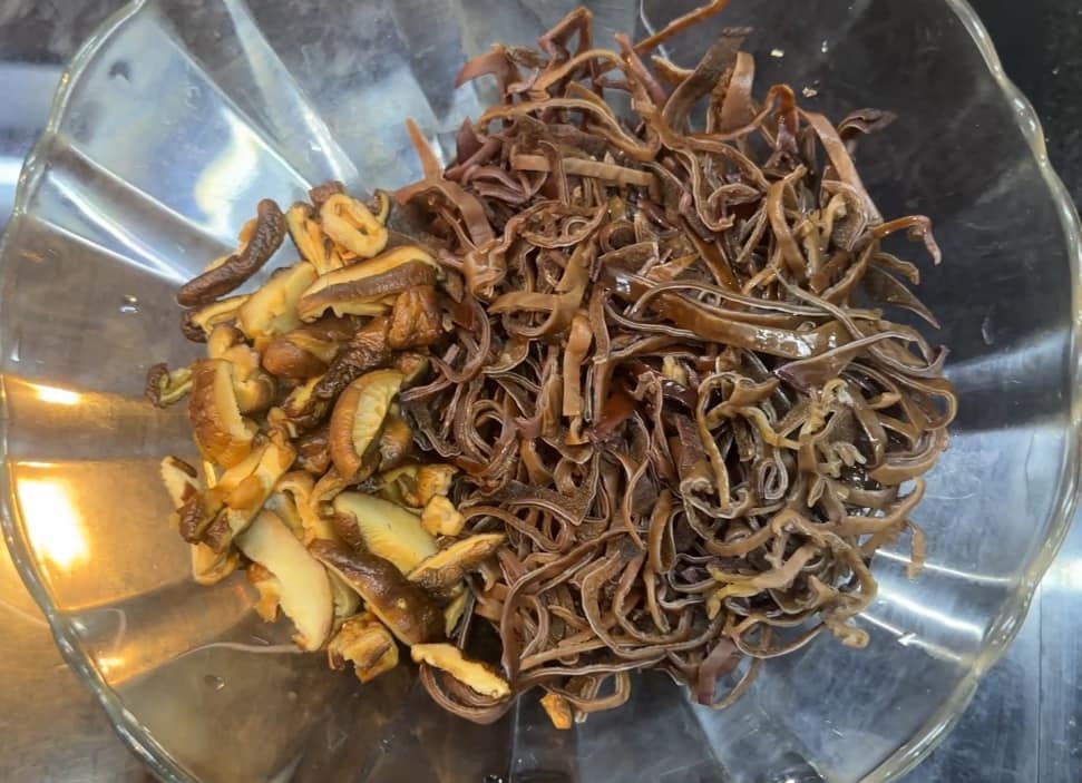 Nấm hương và mộc nhĩ ngâm mềm, sạch sẽ, thái nhỏ, góp phần làm giàu thêm vị giác cho món ăn.