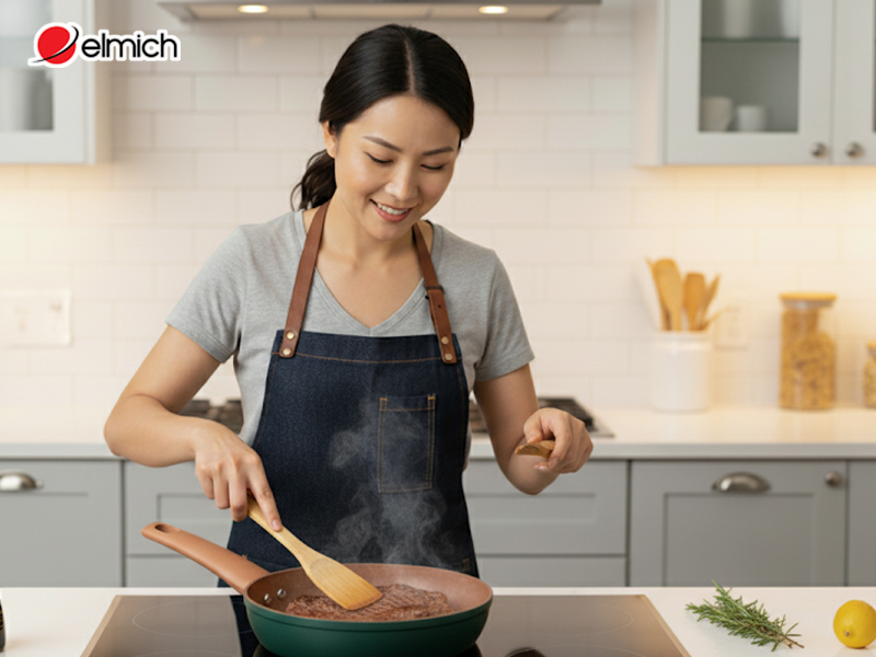 Chảo chống dính Elmich giúp truyền nhiệt hiệu quả, đảm bảo thịt chín đều và giữ trọn vẹn dưỡng chất. Đặc biệt, việc sử dụng ít dầu mỡ hơn cũng là một ưu điểm, giúp món ăn lành mạnh hơn. Đây là sự lựa chọn lý tưởng cho các bà nội trợ bận rộn nhưng vẫn muốn có món ăn ngon cho gia đình.