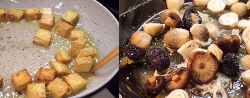 Chiên đậu hũ, xào nguyên liệu nấu bún