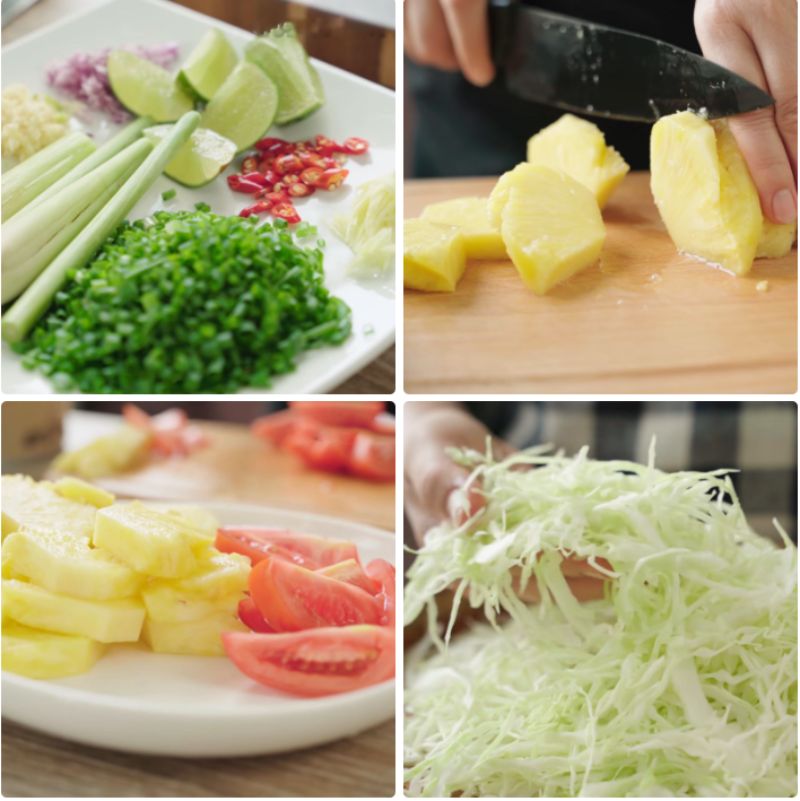 BƯỚC 2: SƠ CHẾ CÁC LOẠI NGUYÊN LIỆU KHÁC CỦA MÓN BÚN CHẢ CÁ