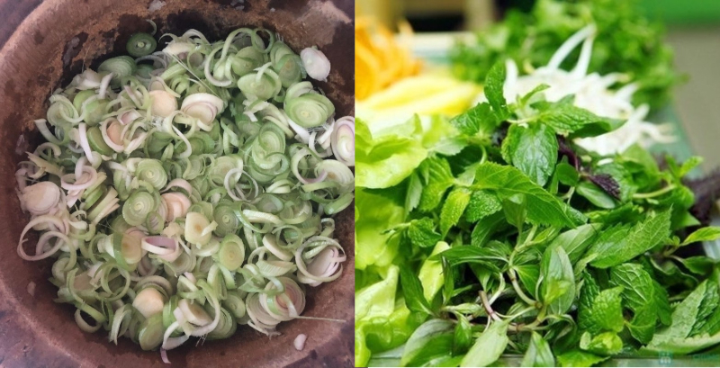 1 ít các loại rau ăn kèm như húng tây, xà lách, húng quế, tía tô, húng lủi