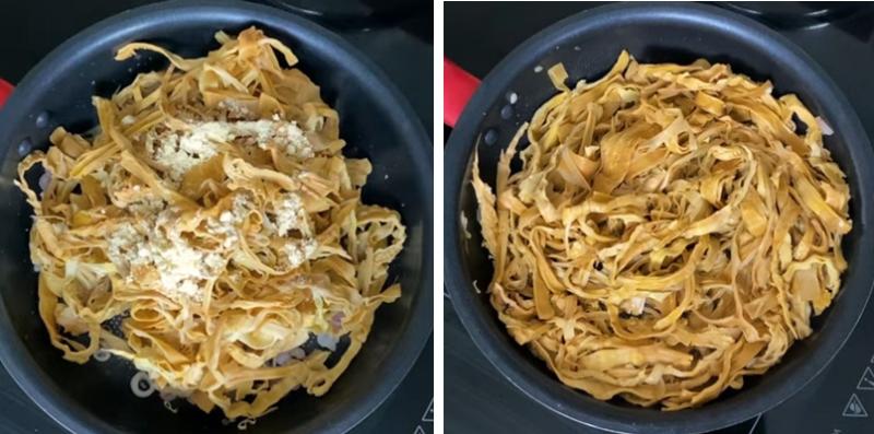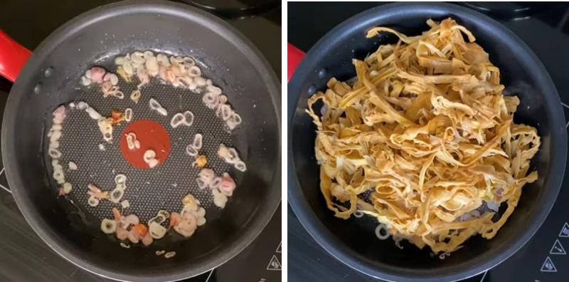 Phi thơm hành tím sau đó xào măng cho thấm gia vị