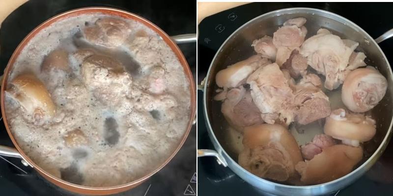 Trần qua với nước đến khi chân giò sạch thì nước dùng sẽ hết mùi hôi khó chịu