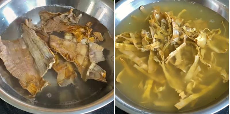 Bước 2: Sơ chế măng khô để nấu bún măng giò heo