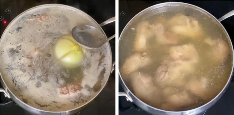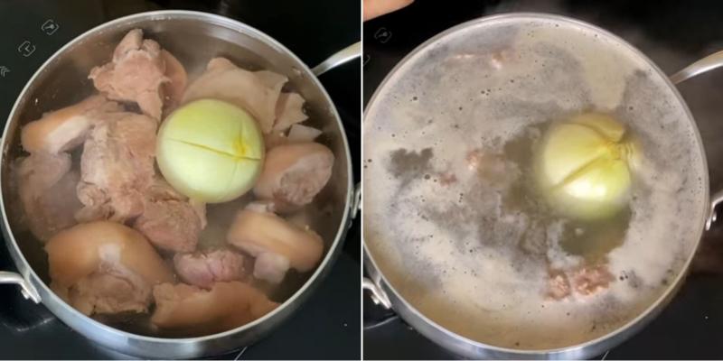 Hầm nước dùng với một củ hành tây để loại bỏ mùi hôi khó chịu