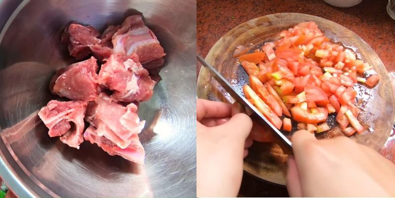 Chuẩn bị nguyên liệu nấu bún thịt băm cà chua