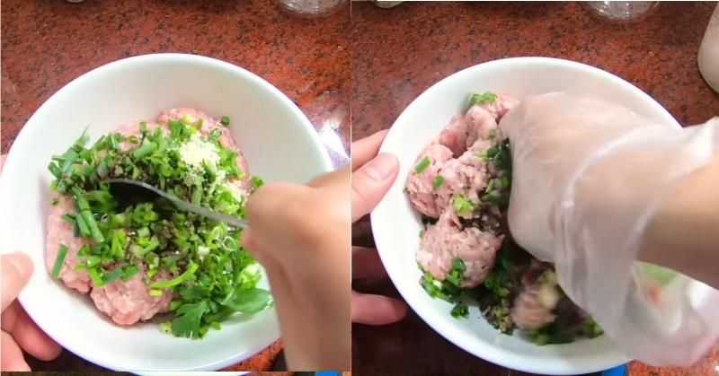 Bước 3: Tiến hành ướp thịt băm để nấu bún thịt băm