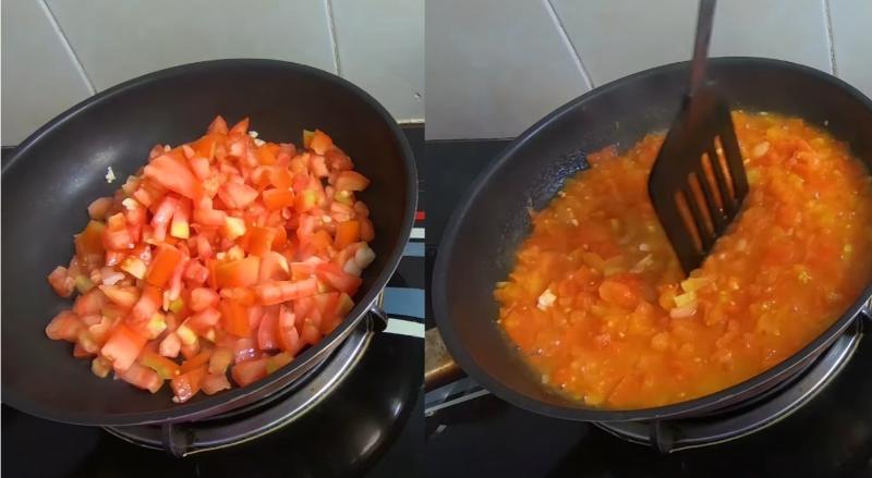 Nước xào cà chua giúp nước dùng bún có màu đẹp và vị chua nhẹ hấp dẫn