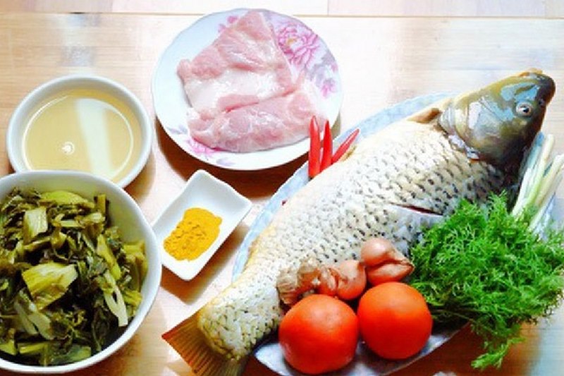 Nguyên liệu làm cá chép om dưa đúng chuẩn
