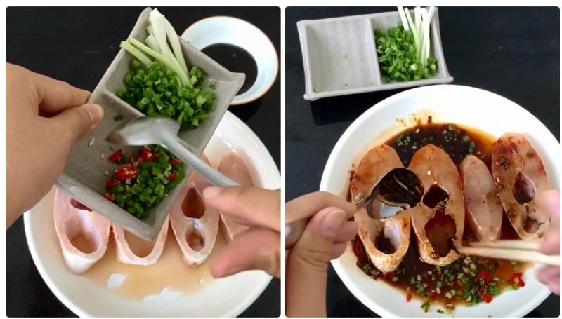 Để món cá diêu hồng kho tộ được thơm ngon, bạn cần ướp chúng với các loại gia vị. Bạn cho cá đã làm sạch vào trong một tô lớn, thêm vào các nguyên liệu sau: