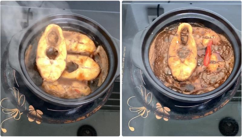 Sau một lát kho, thịt cá sẽ thấm đều gia vị, săn và ngọt hơn nhiều