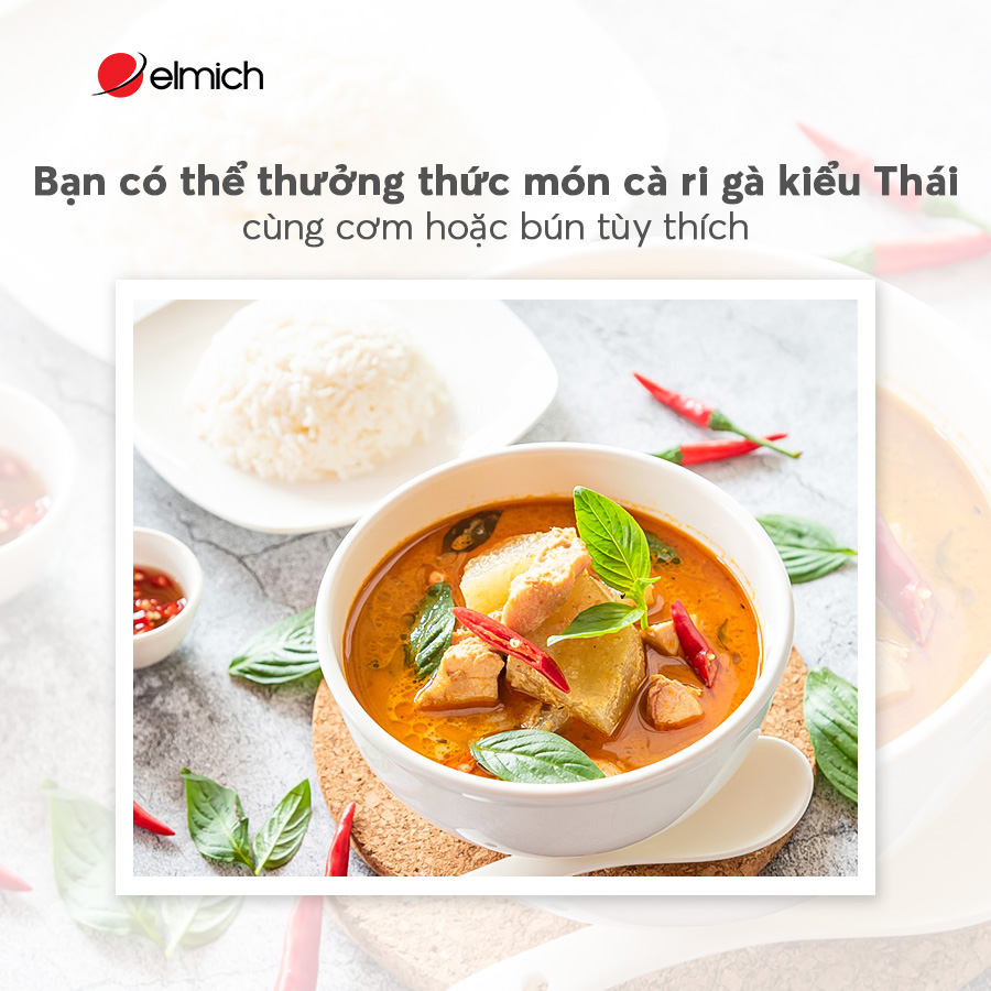 Bắt nguồn từ những nguyên liệu tươi ngon nhất, cà ri gà kiểu Thái là sự pha trộn giữa văn hóa ẩm thực Ấn Độ và ảnh hưởng của các nước Đông Nam Á khác, tạo nên một món ăn đậm đà và bắt mắt. Cùng Elmich vào bếp và thực hiện món cà ri gà kiểu Thái thơm ngon, chinh phục mọi thành viên trong gia đình bạn nhé!