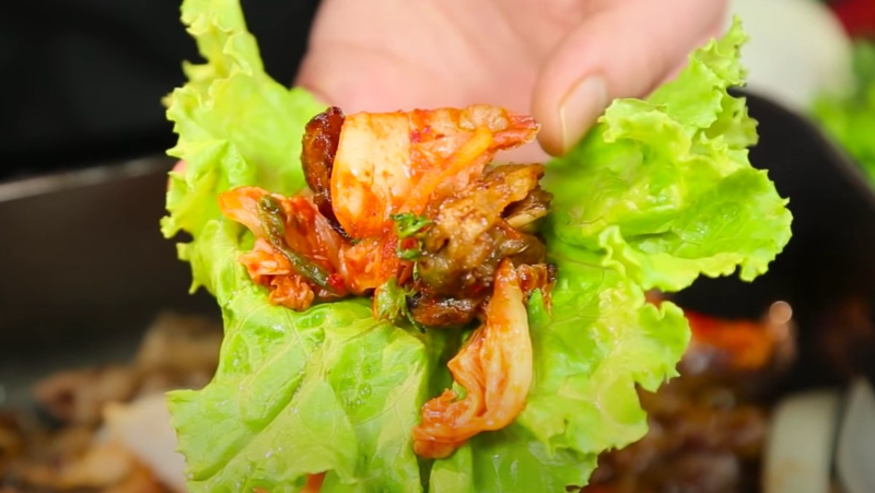 Thịt ba chỉ nướng ăn kèm với rau sống, kim chi cực ngon