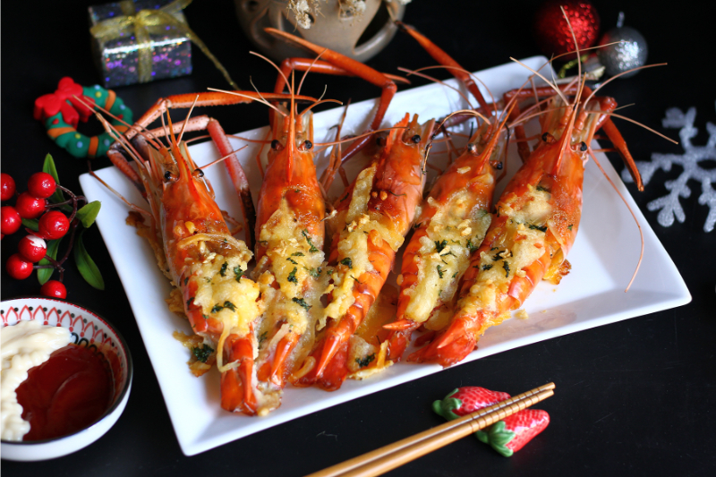 Thịt tôm nướng ngọt lịm kết hợp với phô mai béo ngậy là một món nướng cực hấp dẫn