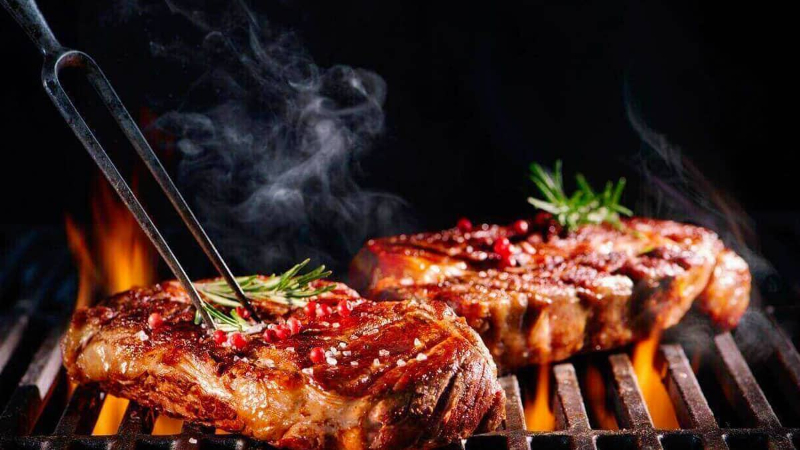 Thịt bò nướng cả tảng giữ được phần thịt bên trong mềm, béo ngậy