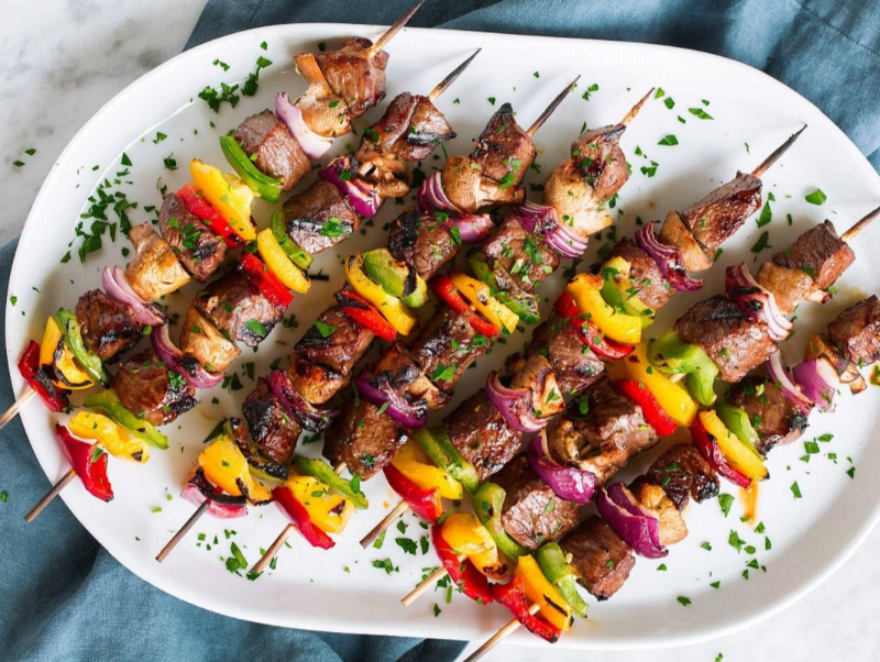 Thêm một chút rau củ sẽ khiến thịt nướng bớt khô, ăn bớt ngán hay khó chịu. Món  ăn này sử dụng thịt bò bắp, hoặc thịt lợn mềm. Sau khi tẩm ướp gia vị sẽ được xiên que cùng rau củ như ớt ngọt, bông cải xanh, dứa, nấm và nướng trên lửa than nhỏ. Món ăn này đặc biệt được trẻ em yêu thích, rất phù hợp với những buổi tụ họp gia đình.