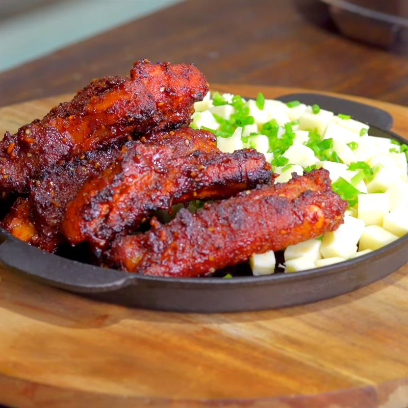 Đồ nướng Hàn Quốc luôn góp mặt trong danh sách các món nướng ngon, được yêu thích bậc nhất. Sườn nướng theo kiểu người Hàn có màu sắc đẹp mắt, thấm đẫm gia vị cay nhẹ. Đặc biệt, sườn sẽ dùng kèm với phô mai dẻo béo ngậy, hấp dẫn với hương vị không thể chê ở điểm nào.