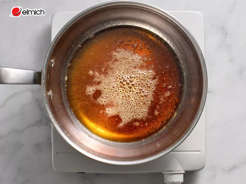 Cho khoảng 50g đường vào nồi, đun nhỏ lửa cho đến khi đường chuyển sang màu vàng nâu cánh gián. Thêm vài giọt nước cốt chanh để hạn chế đường kết tinh lại. Sau đó, nhanh tay đổ caramel vào đáy khuôn bánh flan.