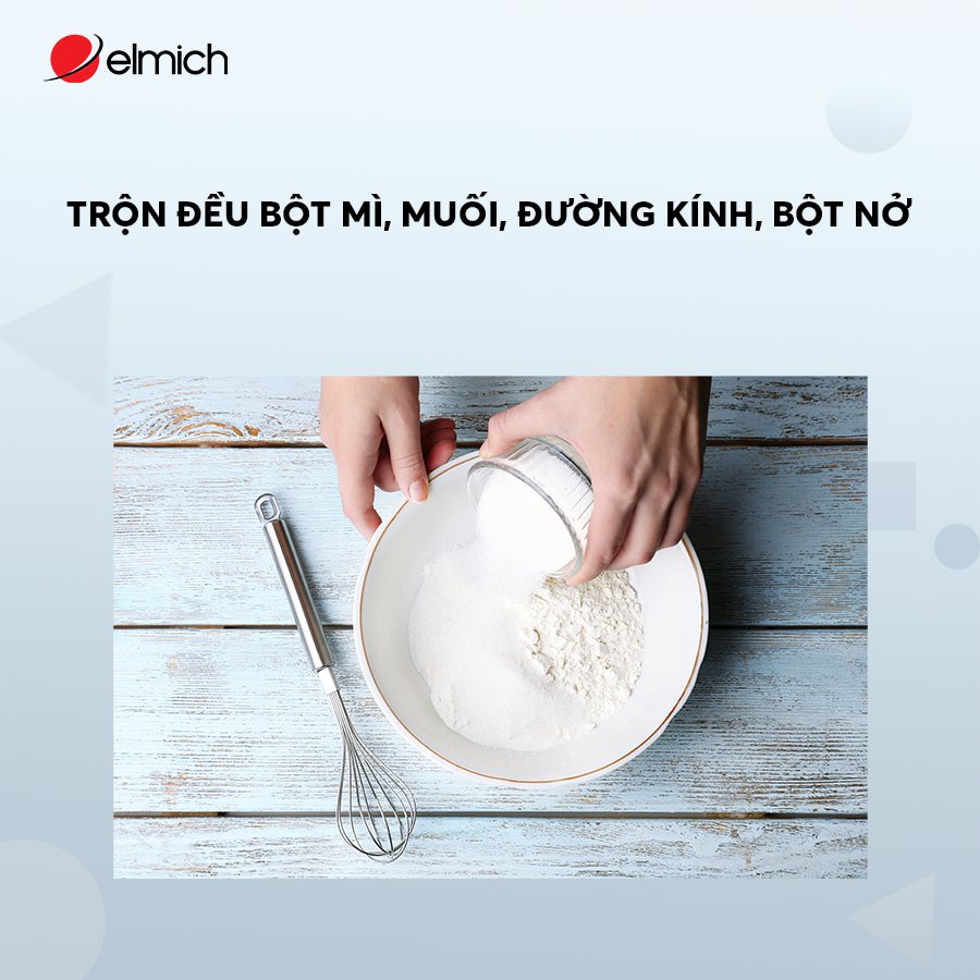 - Trộn đều bột mì, đường kính, muối, bột nở.