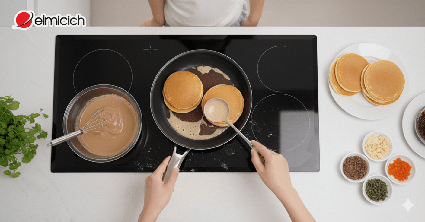 - Kỹ thuật đổ bột để bánh tròn đều: Quét một lớp dầu ăn mỏng lên chảo rồi lau sạch bằng giấy ăn. Dùng muỗng múc bột, đổ dứt khoát từ độ cao vừa phải để tạo hình tròn đều.