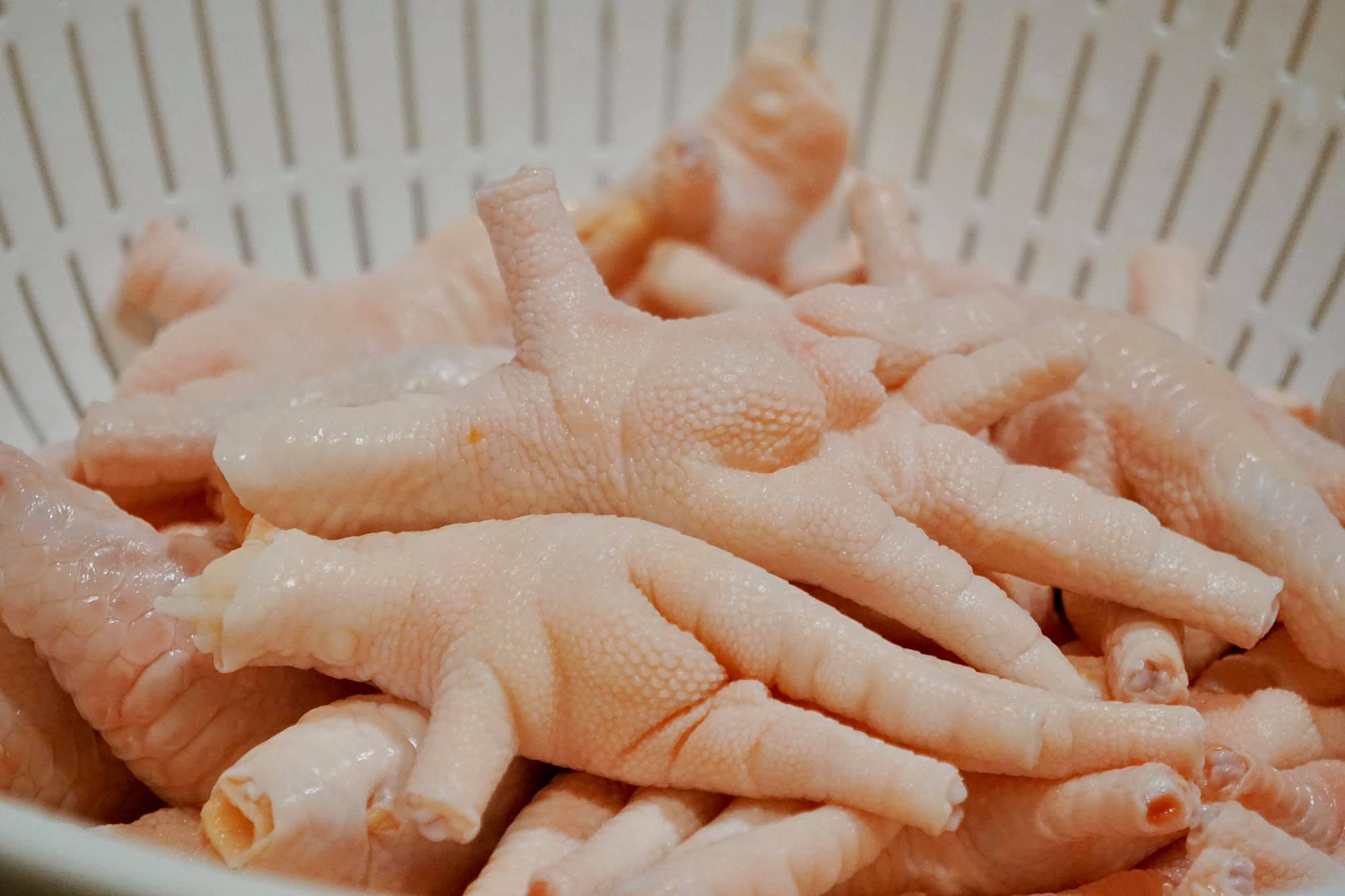 - Màu sắc tự nhiên: Chân gà ngon thường có màu trắng hồng, không xuất hiện các đốm xanh, đỏ hay vàng bất thường.