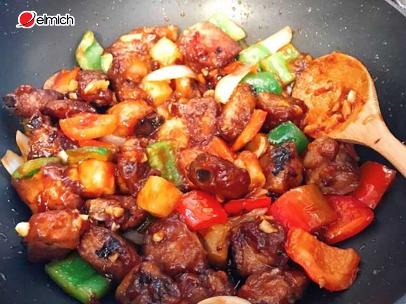 - Xào rau củ ở lửa lớn: Khi cho hành tây, ớt chuông hoặc dứa vào, hãy để lửa lớn và đảo nhanh tay. Cách này giữ được độ giòn, ngọt tự nhiên và màu sắc tươi sáng của rau củ, giúp món sườn xào chua ngọt vừa ngon miệng vừa đẹp mắt.
