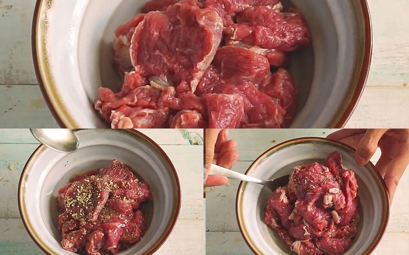 Bước 2: Ướp thịt bò với các nguyên liệu có sẵn