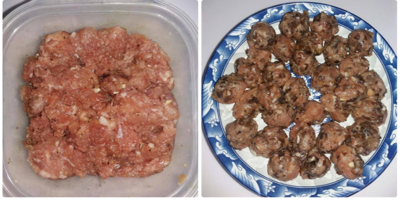 TRộn đều, ướp thịt với các loại gia vị trong vòng 10 phút để thịt đậm đà hơn. Sau đó, bạn bôi một chút dầu ăn vào tay mình và bắt đầu vo thịt thành những viên vừa ăn.