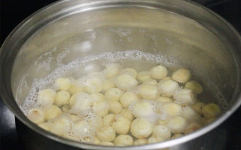 Hạt sen sau khi ngâm đem đi luộc chín và nghiền nhuyễn