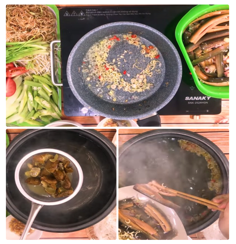 Lần lượt tiến hành các bước nấu nước dùng lẩu lươn