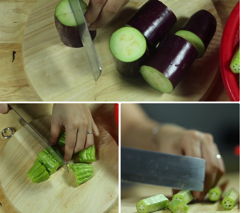 Cách bạn lần lượt sơ chế cà, mướp đắng và đậu bắp phù hợp nhất