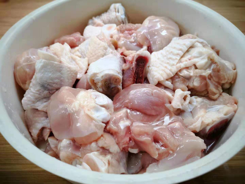 Sau khi làm sạch thịt gà, bạn chặt thành những miếng nhỏ vừa ăn