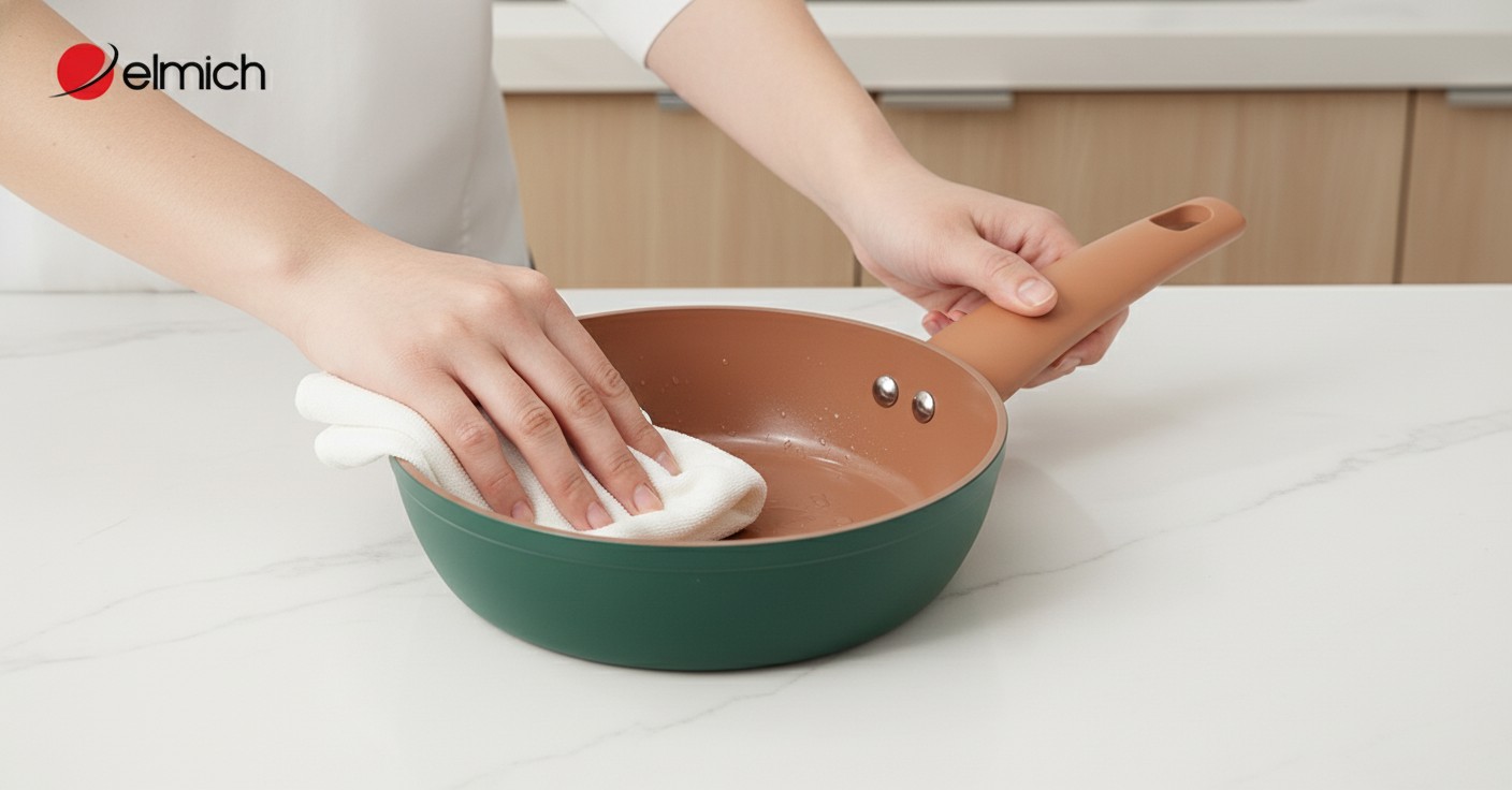 Hướng dẫn chi tiết 5 bước "tôi chảo" Ceramic chuẩn chuyên gia Elmich
