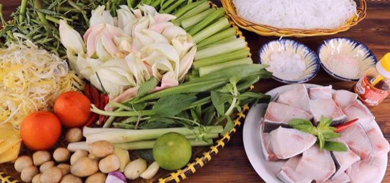 Nguyên liệu chuẩn bị nấu cá bớp canh chua