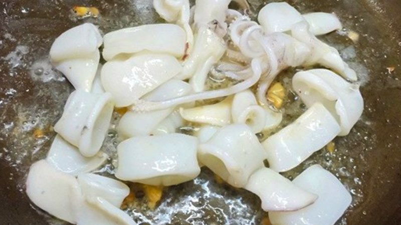 Xào sơ qua mực để có độ săn chắc vừa phải