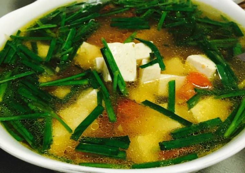 Canh giá hẹ nấu đậu hũ chay mặn đều dùng được