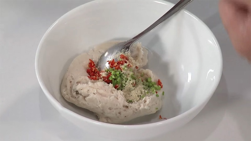 Chả cá là một phần quan trọng của món canh, cần được ướp thật kỹ để gia vị thấm đều. Bạn có thể thực hiện bằng cách trộn với ớt hiểm, gốc ngò rí, tiêu, hạt nêm, và dầu ăn. Điều không chỉ mang lại hương vị đặc trưng mà còn giúp nguyên liệu này trở nên thơm ngon, dai dai.