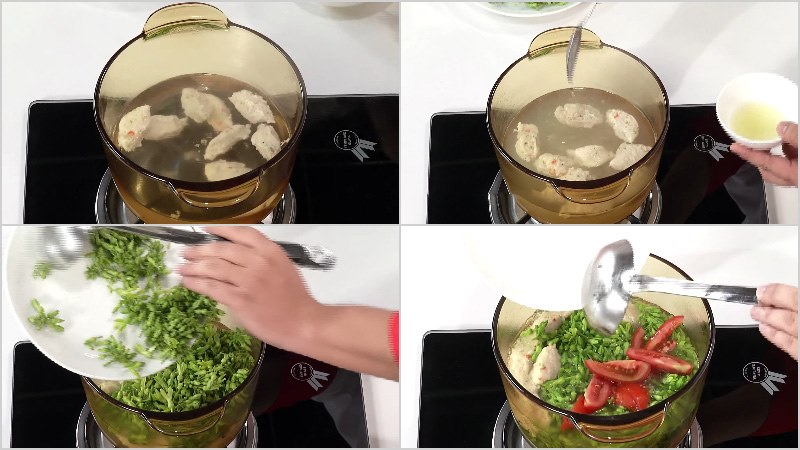 Khi nguyên liệu đã sẵn sàng, chị em cần đun sôi nước rồi chia chả cá thành các viên giúp canh trở nên ngon hơn. Thêm gia vị như muối, bột ngọt, hạt nêm, đường, và nước cốt chanh tùy theo sở thích cá nhân.