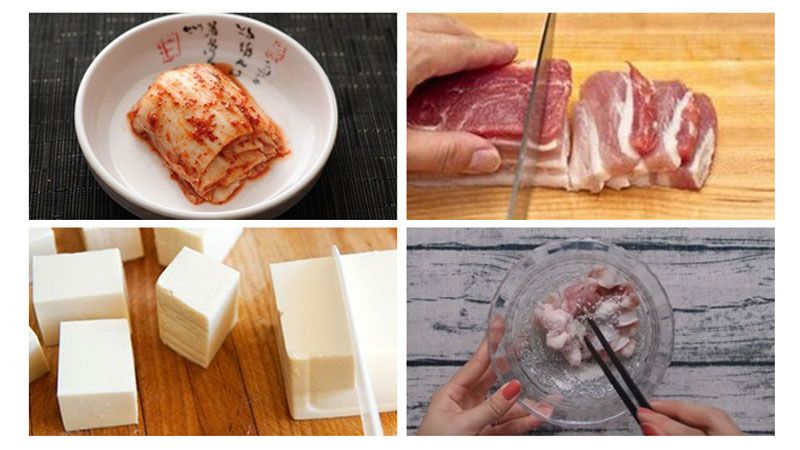 Khi hành dậy mùi thơm, cho thịt heo vào đảo đều đến khi thịt săn lại thì cho kim chi vào. Xào nhẹ tay khoảng 2 phút, cho thêm nước lọc vào để nấu canh, nêm nếm thêm các loại gia vị cho vừa ăn.