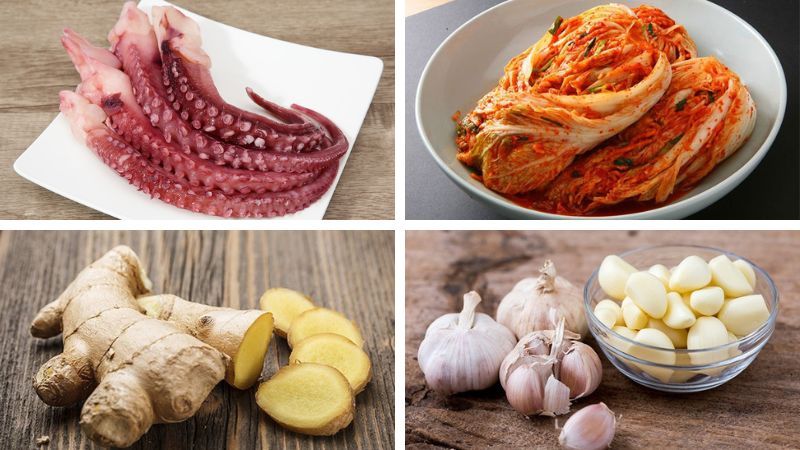 Nguyên liệu chính của món canh kim chi với mực
