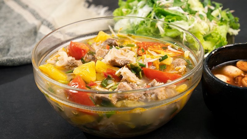 Canh sườn chua nấu dứa thanh ngọt, vừa ngọt vừa chua