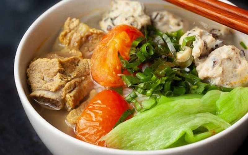 Món canh sườn chua dọc mùng có thể ăn kèm với bún