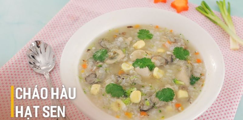 Một bát cháo hàu hạt sen được trình bày đẹp mắt