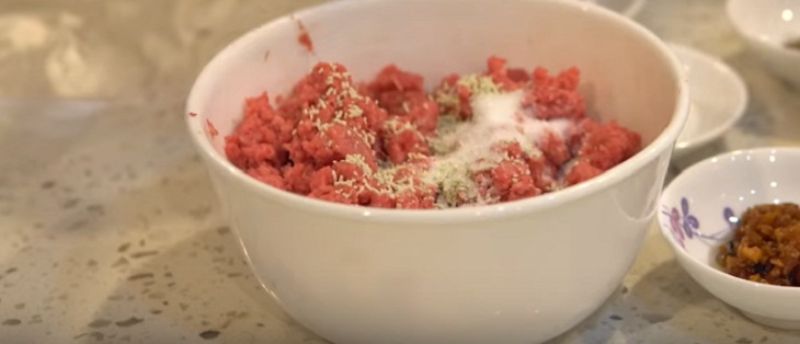 Thịt bò đem rửa sạch với nước, thái thành miếng mỏng sau đó băm thật nhỏ. Sau đó, bạn có thể ướp thịt bò với một chút muối, một chút bột ngọt, nước mắm, hạt tiêu và hành tím đã băm nhỏ. Trộn thật đều và ướp kỹ trong khoảng 20 phút để thịt thấm đều các loại gia vị.