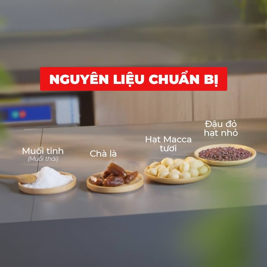 Các nguyên liệu cần chuẩn bị để làm món sữa hạt macca đậu đỏ